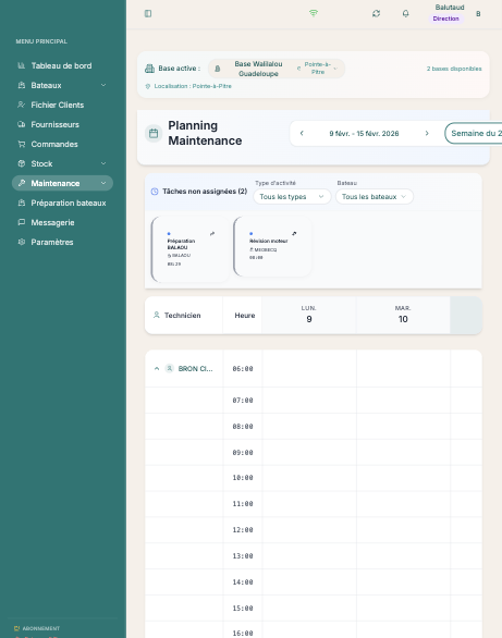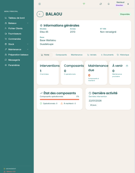 Centralisez les interventions, l’historique des bateaux et les tâches après retour afin d’éviter les oublis coûteux.