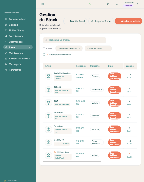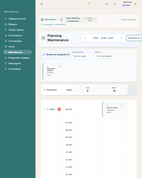 Un logiciel de gestion de maintenance bateau professionnel vous permet de structurer les interventions, suivre les coûts d’entretien et sécuriser l’organisation entre chef de base et techniciens.